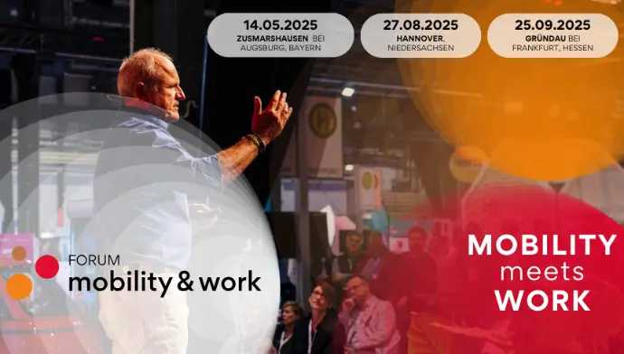 Am 26. August 2025 findet das FORUM mobility & work im ADAC-Fahrsicherheitszentrum Hannover statt. Teilnehmende erwartet ein Tag voller Best Practices, interaktiver Workshops, Testfahrten und einer Fachausstellung – in einem Umfeld, das Innovation und Sicherheit vereint.